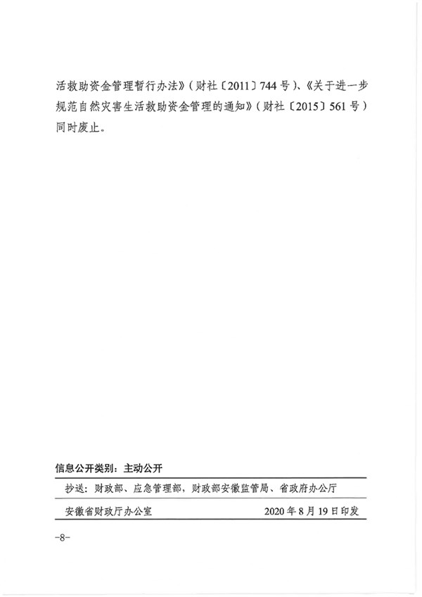 | 名称: | 关于印发《安徽省自然灾害救灾资金管理实施细则》的通知 |